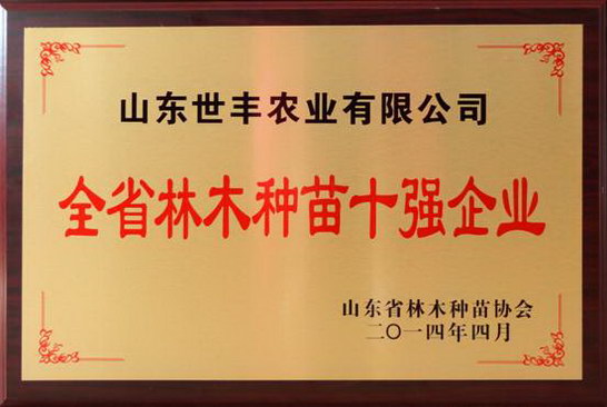 山東世豐農(nóng)業(yè)有限公司被授予全省林木種苗十強(qiáng)企業(yè)