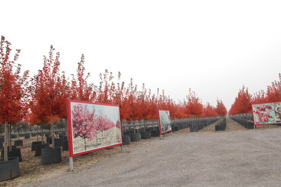 2014年11月12日上午,河北省張家口市高局長(zhǎng)和張總一行來(lái)我公司基地參觀考察 。公司園區(qū)負(fù)責(zé)人負(fù)責(zé)接待,向高局長(zhǎng)一行介紹了了公司近期的發(fā)展?fàn)顩r和未來(lái)的發(fā)展方向。隨后參觀了美國(guó)紅楓種植基地和北美海棠種植基地。最近正是夕陽(yáng)紅紅楓變色的季節(jié),夕陽(yáng)紅紅楓是美國(guó)紅楓系列中最經(jīng)典的代表品種。是秋色表現(xiàn)最好的品種之一,也是國(guó)際綠化市場(chǎng)上應(yīng)用量最大的喬木。高局長(zhǎng)一行在參觀中詳細(xì)詢問(wèn)了彩色苗木在我公司的育苗經(jīng)驗(yàn),與我公司專業(yè)技術(shù)人員探討容器苗的栽培技術(shù)。并稱贊我公司的夕陽(yáng)紅紅楓好像落日晚霞的顏色,映紅了世豐基地,色彩紅艷,讓人眷戀。