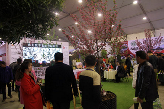 展會中,世豐農(nóng)業(yè)展出的一株株紫色王子海棠花開正茂,玫瑰紅色的花瓣掛滿枝頭。吸引住了不少觀眾,紛紛駐足拍照留念,