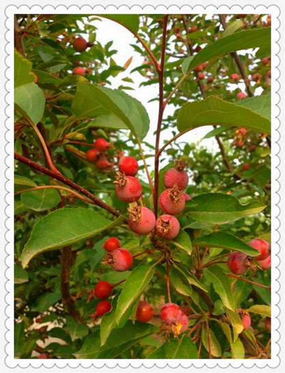 7至8月是觀賞夏果的最佳季節(jié),這時(shí)的葉色凝重穩(wěn)定,襯托著那一樹(shù)紅透透、黃橙橙的成熟果實(shí),可謂美輪美奐,喜氣洋洋!能夠食用的大果“道格”美艷驚人,香氣撲鼻;“絢麗”的葉色已經(jīng)變成可愛(ài)的蘋果綠,襯托著滿樹(shù)洋紅色的美果,遠(yuǎn)看竟像是開(kāi)了一樹(shù)紅花;“紅葉紅花垂枝北美海棠”果實(shí)紅透透的,像一串串紅寶石垂掛在隨風(fēng)飄逸的柔枝上,嬌艷欲滴。