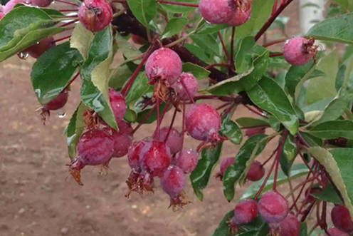 雨中賞海棠 昨天日照開始下雨,天氣預(yù)報說,這場雨將會持續(xù)到今天夜間。 如此的細(xì)雨綿綿,讓人感覺到了清涼和濕潤。連續(xù)的天氣燥熱,讓今年的日照有些干旱。人們都說旱天雨難下,然而這場雨還是如期而至了。古詩道:“久旱逢甘雨”,作為《四喜詩》的首句,表達(dá)出了大眾意義上的喜。帶著“久旱逢甘雨”的詩意,城市的燥熱漸行漸遠(yuǎn),置身于北美海棠種植基地,透過薄霧,“萬綠叢中一點紅”闖入眼簾。 這里是山東世豐農(nóng)業(yè)有限公司北美海棠種植基地。公司目前擁有近百個北美海棠優(yōu)秀品種。歡迎各界朋友前來基地參觀考察。