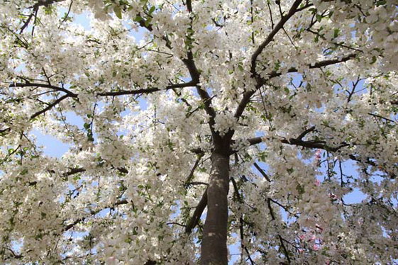 每到四月,就成了海棠的主場,海棠花淡雅而灑脫,開時濃艷,隨之色淺,初綻時嬌艷朵朵,怒放時絢麗片片,花落時繽紛片片。