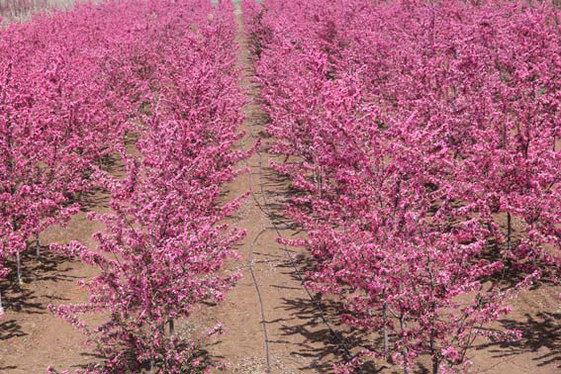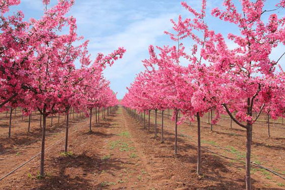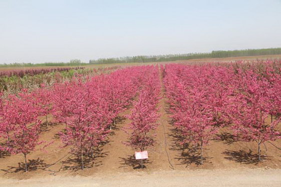 明代《群芳譜》記載:海棠有四品,皆木本。此四品指:西府海棠、垂絲海棠、木瓜海棠和貼梗海棠。但是在汪湖鎮(zhèn)占地4300畝的世豐彩色苗木基地,海棠有43個品種,表現(xiàn)最好的當(dāng)屬紫色王子,其樹形直立挺拔,花紅艷麗,掛果累累,是替代梧桐、香樟等傳統(tǒng)景觀樹的優(yōu)選樹種。