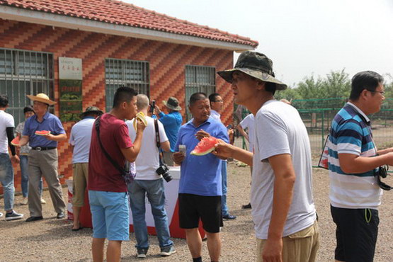 考察隊一行來到世豐農(nóng)業(yè)種植基地,天氣炎熱卻阻擋不了考察隊參觀苗圃基地的熱情,世豐基地準備了水果、飲料盛情招待考察隊員。