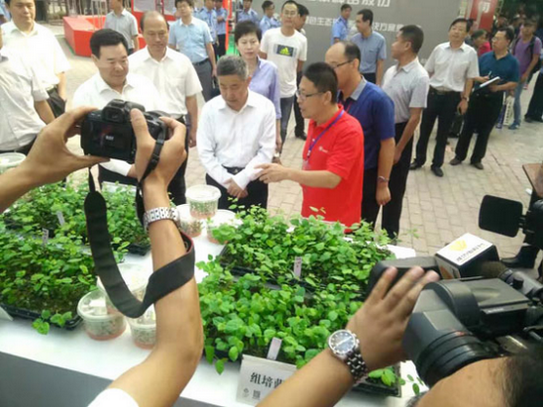 鄭經(jīng)理向趙省長(zhǎng)一行介紹公司組培產(chǎn)品