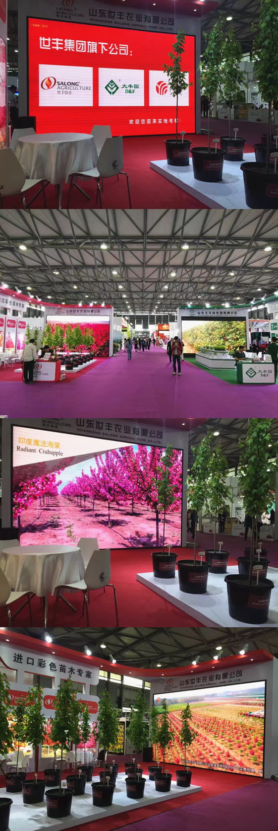 展會現(xiàn)場,實(shí)景拍攝的照片與美國紅楓小苗將世豐公司的展位裝點(diǎn)的十分吸引眼球,北美海棠和美國紅楓的實(shí)景航拍片給您絕對震撼的視覺效果。