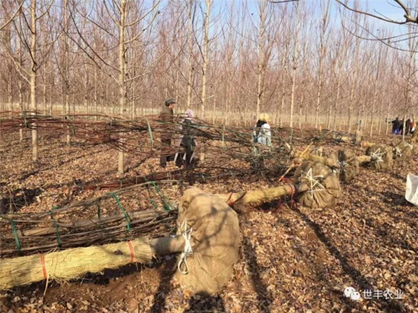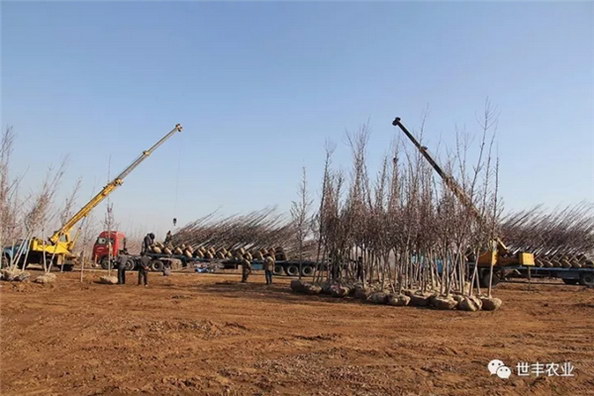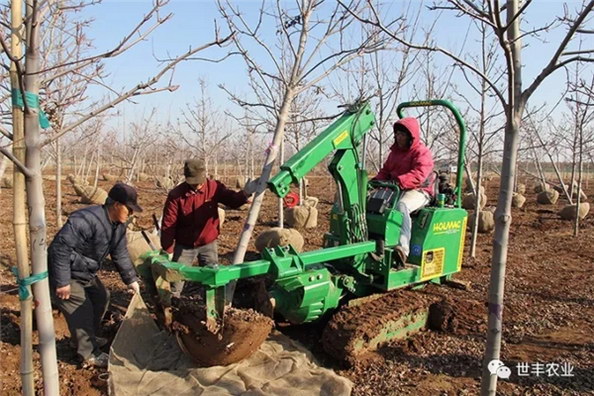 2017年秋冬季,一如既往是世豐農(nóng)業(yè)的“發(fā)貨季”,此時(shí),世豐農(nóng)業(yè)進(jìn)口彩色苗木大苗種植基地里面正是一片紅火景象,美國(guó)紅楓大規(guī)格苗木正在緊張的進(jìn)行著挖樹(shù)前的精準(zhǔn)號(hào)樹(shù)、樹(shù)干包裝防護(hù)和機(jī)械挖樹(shù)的工作,一批樹(shù)開(kāi)挖進(jìn)行中,另一批樹(shù)已經(jīng)“整裝待命”······