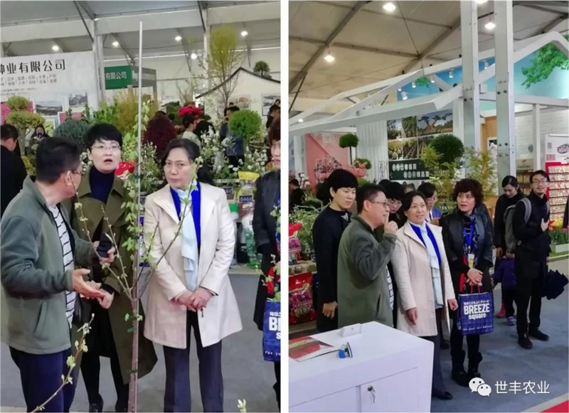 展會(huì)現(xiàn)場(chǎng)中國(guó)花卉協(xié)會(huì)副秘書長(zhǎng)楊淑艷、山東省林木種苗協(xié)會(huì)秘書長(zhǎng)王大贏、北京林木種苗產(chǎn)業(yè)協(xié)會(huì)秘書長(zhǎng)王亮、河北省林木種苗協(xié)會(huì)秘書長(zhǎng)李書戰(zhàn)等相關(guān)企事業(yè)單位大咖紛紛蒞臨世豐展位參觀交流,工作人員依次向其介紹了我公司的新優(yōu)品種及其特點(diǎn)和適合的園林應(yīng)用案例,參觀領(lǐng)導(dǎo)對(duì)我公司的苗木品質(zhì)認(rèn)可度極高,并希望能與更多的公司合作,為國(guó)家的生態(tài)建設(shè)、園林的綠化彩化事業(yè)做出自己的貢獻(xiàn)。