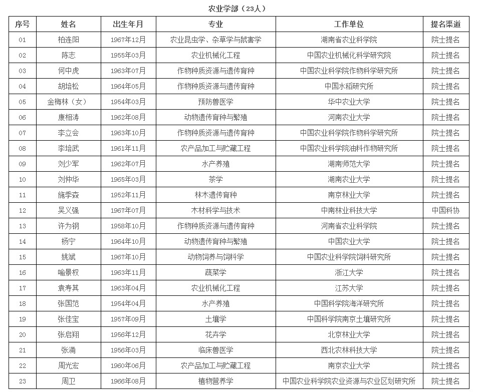 其中農(nóng)業(yè)學(xué)部23人入選.